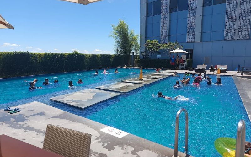 A true highlight of this 5-star hotel in Manila & Alabang with pools, dining & amenities is its outdoor swimming pool. Located high above the city streets, the pool offers a refreshing escape paired with a great view of Alabang’s skyline. It’s an inviting space for both morning laps and late-afternoon relaxation.
