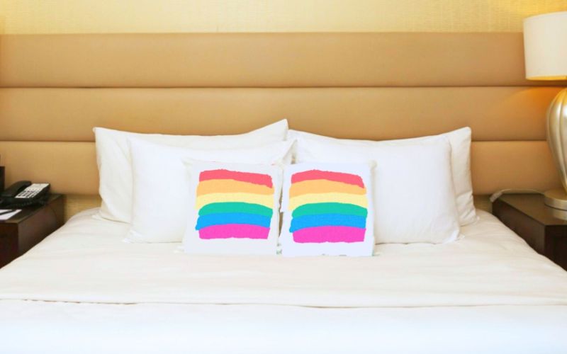 Every stay includes a Pride-themed welcome amenity, access to the pool and fitness center, special dining discounts, and yes—part of what you pay goes to support the work of LoveYourself Inc.