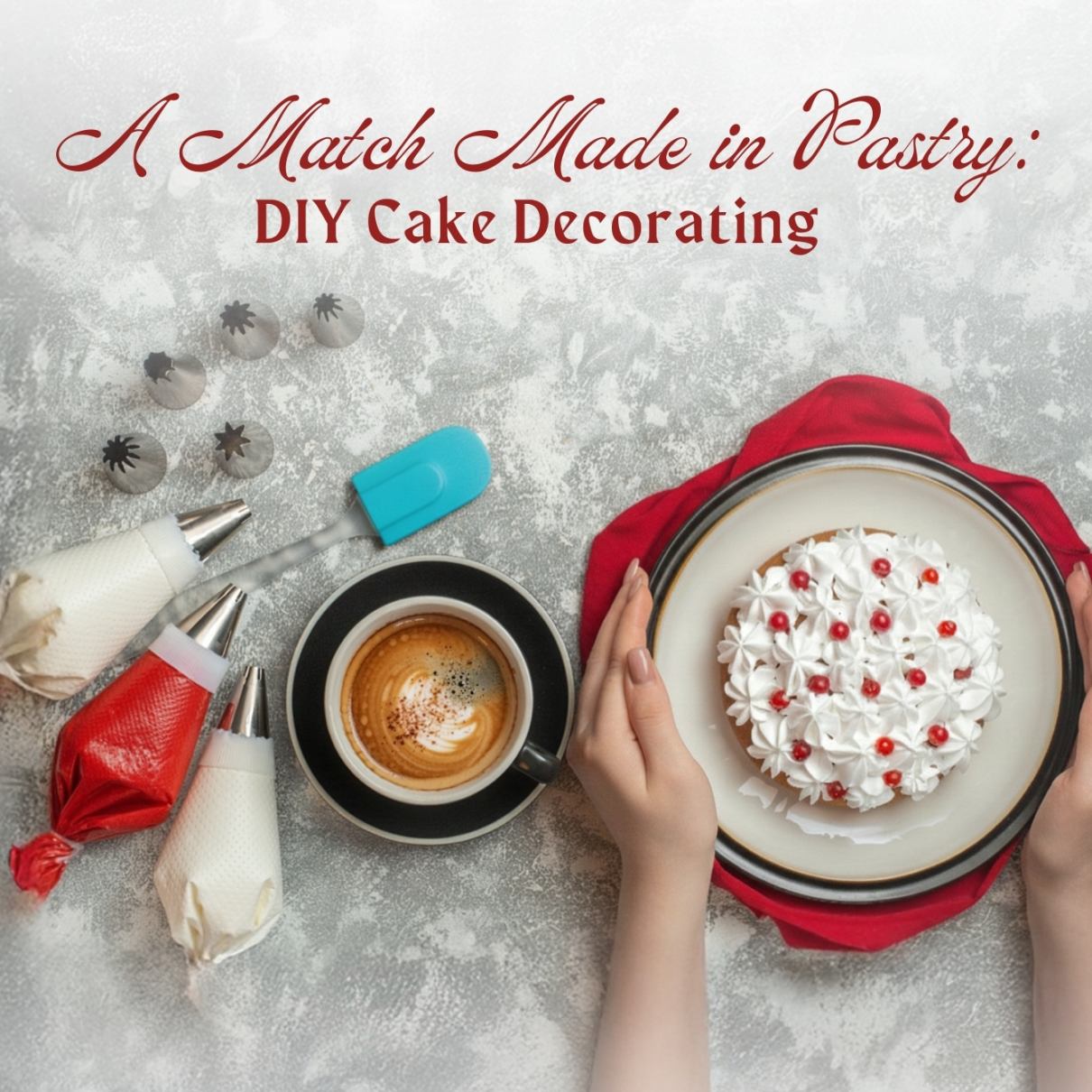 Inclusions: 4-inch pre-baked cake, decorating kit, guided session with our expert Pastry Chef, and complimentary coffee or tea.